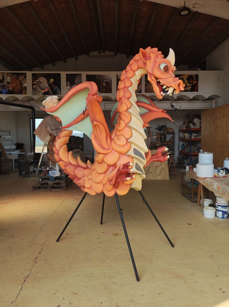 Una bèstia de moviment harmoniós que trenca la simetria en totes les seves parts, des del coll, passant per les ales i fins la cua. Té una expressió simpàtica i viva accentuada pels ulls grossos i el color viu de les seves escates. L’acabament de la cua s’inspira en una flor de lotus. Aquesta figura és el protagonista de l’espectacle “El Drac que Vol Tragar” que es rememora any rere any a la seva vila.