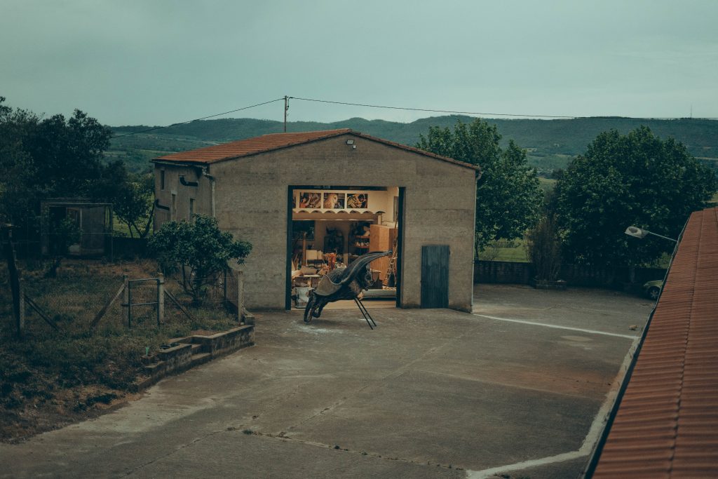 Un espai que respira natura on cada racó convida a la creativitat, on s’aplega la calidesa  dels projectes i les persones que envolten l’artista, i on l’aire refresca l’ambient quan  s’obren les portes i els finestrals.