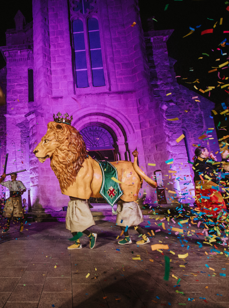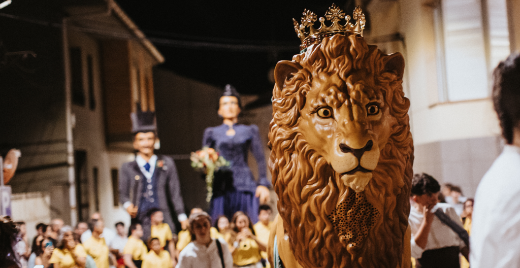 A sculpture with character, strength and a penetrating gaze. Designed to become a solemn and protocol figure, imposing in its physiognomy and worked to the last detail under the signature of the workshop. It sculpturally details the entire anatomy of the animal, the figure culminates in a crown representing the iconography of the town of Gironella and a damask to match the design of the wearers’ costumes, the whole set created by the artist himself.