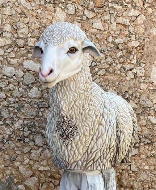 Una figura dòcil, pura, blanca. La mirada de l’ovella i la seva expressió calmada i tendre fan d’aquesta escultura una imatge propera i alegre. El fet que tingui les cames dels portadors a vista permet realitzar una coreografia i moviments elaborats. Tanmateix, l’escultura del pelatge/llana es recargola amb uns rínxols elaborats al detall amb una policromia a base de clarobscurs i tonalitats de blanc.